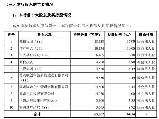 湖州银行当前的十大股东以本地国资及民企为主。在这样的股权结构背景下,湖州银行的贷款业务也体现了明显的地域特色,前十大客户主要为湖州市及下辖区、县政府融资平台贷款。
